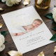 Celebrate your son or daughter's baptism with our beautiful, modern, and minimal design. Our design features a full photo layout, with the word "baptism" designed in a beautiful brush-style script font. The event details are beautifully laid out over the baby's photo. The reverse side features a simple gross.