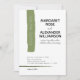 Solid white background. Brushed, modern green stripe down the left side with "you're invited" inside. Bride and groom names are in uppercase font, with some script scattered throughout the invitation. Date, time and place at the bottom with another darker green, brush stripe. The back is a solid, dark green that matches the front smaller stripe. Simple and modern. Completely customize the text on the invitation to suit your personal information. Please see the other coordinating pieces in this suite.