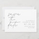 Simple and elegant wedding save the dates for modern minimalist couples feature "save the date" in handwritten script lettering aligned at the left. Your wedding details appear in classic lettering at the right. Use the back for sharing additional information with your guests.