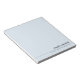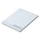 Light dusty blue or custom colour notepad with a thin border between your name and custom text. The text is aligned to the right. Fonts and colours can be customized with the design tool.