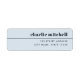 Light dusty blue or custom colour return address labels with a thin border between your name and return address and the text aligned to the right. Fonts and colours can be customized with the design tool.
