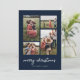 Modern Minimal Merry Christmas Four Photo Collage Holiday Card