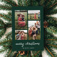 Modern Minimal Merry Christmas Four Photo Collage Holiday Card
