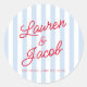 Modern Minimal Minimalist Red Blue Stripes Wedding Classic Round Sticker