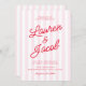 Modern Minimal Minimalist Red Pink Stripes Wedding Invitation