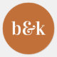 Modern Minimal Monogram Initials Orange Wedding Cl Classic Round Sticker