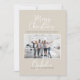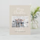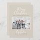 Modern minimal natural script boho beige and black photo and your logo Christmas holiday business card design.