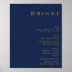 Modern Minimal Navy Blue Gold Wedding Drinks Menu Poster
