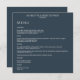 Straight-forward minimalist wedding reception menu featuring clean lines, minimalist typography and a bold colour palette. ❀❀❀ Please reach out for assistance in personalizing or customizing to fit your individual wishes. Or, for assistance in creating related products or custom colour ways to create your perfect wedding stationery suite.
