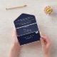This elegant navy blue wedding invitation is perfect for a modern wedding. the simple design features elegant white calligraphy on a blue background.