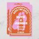 Our minimal, bold retro style wedding save-the-date card is perfect for the trendy couple who loves standing out and making a bold statement. Our design features a bold bright pink-orange colour combo. A simple abstract wavy arch shape creates a bold look with the wedding date displayed boldly in white large font. The reverse side features a full photo layout with a bold monogram and an optional couple's wedding website address