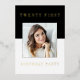 Modern minimalist colorblock design featuring a photo template where you can add your beautiful photo , with black on top and and white bottom colorway with modern simple text saying TWENTY ONE in GOLD on a black background and gold on white at the bottom, being a simple minialistic elegant design to show class and style.