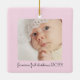 Celebrate your baby's first Christmas with this adorable personalized ornament. The modern and minimal design features a precious photo of your newborn, on a light pink background making it a truly unique keepsake. Add your child's name and the saying "First Christmas" along with the year to create a cherished memento that will bring joy for years to come. This custom gift is perfect for capturing the magic of this special milestone. Hang it on your tree or give it as a thoughtful gift to commemorate this unforgettable occasion.