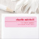 Pink and red or custom colour return address labels with a thin border between your name and return address and the text aligned to the right. Fonts and colours can be customized with the design tool.