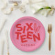 Modern minimal bold typography 16th birthday red and pink party decor favour paper plate design.