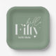 Modern minimal typography simple sage green and white 50th birthday party decor favour paper plate. Part of a contemporary collection.