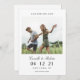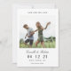 Modern and minimal save the date cards, perfect to announce your new wedding date. The front of the card features the couple photo "Save our new date" is displayed across the top of the invitation. customize with your names, date, and location.