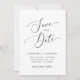 Modern and minimal save the date card featuring an elegant script that says "save the date" in the middle with the brief wedding information. You can add a photo on the back.