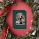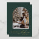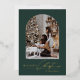 Modern Minimal Script Arch Photo Green Christmas Foil Holiday Card