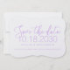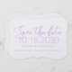 Simple, Minimal, Plain Non-Photo Save the Date Card in an elegant fancy die-cut bracket shape in lilac lavender orchid purple and white with elegant script typography and large date numbers in a chic sans-serif font. Customize the template by selecting any colours and fonts you want for your wedding announcements.