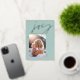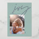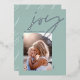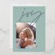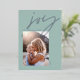 Modern minimal script sage green joy 1 photo holiday card. Elegant real gold, silver and rose gold foil design.