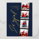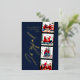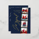 Modern minimal script multi photo Christmas retro navy blue design. Elegant classy real gold, silver and rose gold foil design.