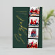 Modern minimal script multi photo Christmas green retro design. Elegant classy real gold, silver and rose gold foil design.
