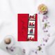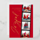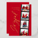 Modern minimal script multi photo Christmas red retro design. Elegant classy real gold, silver and rose gold foil design.
