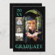Simple arch frame photo graduation announcement. You can customize it with the graduate's name, school name, or date. Trendy mint and black complimenting colour scheme. All colours are editable to change to your school or party theme colours. Hand lettered text overlay "The Best Is Yet To Come".