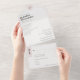 An improved version of the tri-fold invitation now with a tearaway rsvp section. Enjoy a simple minimal design with touches of dusty rose, combined with a signature style calligraphy typography, for a modern chic look. This all-in-one sustainable invitation would save you money, no need to include RSVP envelopes, your guests will tear away the last panel and mail it back to you as a postcard.