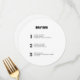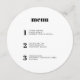 This contemporary wedding menu design features the courses of your wedding meal in simple fonts and a sleek and clean design. The circle menu card certainly stands out from the crowd. Modern typography for a modern wedding. All elements are customizable - text and colours. Names and dates on the back - edit or delete if not needed.