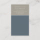 This minimalist card makes a bold statement. The simple vertical design features a slate blue background with a band of taupe along the top edge. The front features your initials while the reverse side includes your name, title and all contact information including phone, web address and social media handle which can be personalized to suit your needs.