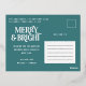 Modern minimal traditional teal merry Christmas Foil Holiday Postcard