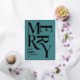 Modern minimal traditional retro vintage graphic typography teal merry Christmas holiday card. Part of a bold fun holiday collection. Real foil adds a classy designer touch.
