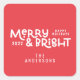 Modern minimal typography merry and bright square sticker