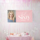 Modern minimal typography simple blush pink and white 60th birthday photo party banner. Part of a contemporary collection.
