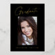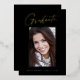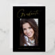 Clean, trendy, modern and elegant "Photo" graduation announcement gold foil cards (your choice of gold silver or rose foil), featuring design elements of modern text with a unique calligraphy ink script. The graduate's photo on the front of the card is accented with a delicate & minimalist partial boarder. The back of the card offers personalized text spaces for information about your graduation or can be cleared if you wish to hand write a message. Black with gold foil or easily customize the background to match your school's primary colour or any colour of your choice. Perfect for the high school, college and university grad student seniors.