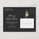 Modern minimal watercolor merry Christmas tree Holiday Postcard