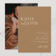 Invite your friends and loved ones to your modern boho wedding with this rustic vibe invitation with calligraphy lettering and beige tan background. Personalize the wedding details and the photo at the back.