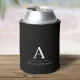 This unique personalized modern minimalist black and white monogrammed can cooler is contemporary and sophisticated, with understated luxury and clean elegance.