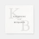 Monogram wedding napkins featuring modern minimalist typography name and initials in black and white colour design.