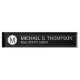 Modern Minimalist Black and White Desk Nameplate featuring name and profession in white modern sans serif font style with black monogram on white side border.
