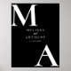 Modern Minimalist Black and White Wedding Sign. Features bold monogram typography and minimal graphic design.