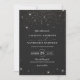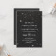 This modern and elegant wedding invitation is perfect for a classy event. It features a faux-printed sparkly black glitter, "and" with confetti sprinkled across the top and bottom, white typography, and sits on top of a simple black background. It's chic, glamourous, minimalist, and trendy; the perfect design to impress your guests.