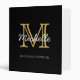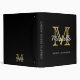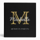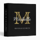 Modern, minimalist black and gold personalized name monogrammed binder. It features a monogram initial in serif style font and pretty handwritten first name text template in gold, white color on black background. Great personalized gift for back to school, professional work, home office, and recipe binder. If you need help or matching items, please contact to me.