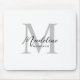 Modern Minimalist Black Script White Grey Monogram Mouse Pad