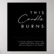 This modern minimalist | black "this candle burns" poster is perfect for your classy boho wedding. Its simple, unique abstract design accompanied by a contemporary minimal script and a black and white color palette gives this product a feel of elegant formal luxury while staying simplistic, chic bohemian. Keep it as is, or choose to personalize it with artwork or graphics of your choice. You can also look to other products within this collection to bring your whole wedding together!