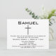 Invite friends and family to celebrate your child's special dedication with these sleek and modern black-and-white invitations. The minimalist design features a simple cross with your son/daughter's name—accompanied by your ceremony and celebration details. Baby dedication cards.