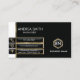 You can give your professional business card a modern minimalist and classy look with this aesthetic black, white and gold theme. The background design has a beautiful and elegant visual element, which emphasize the classic gold foil metallic glitters and 3d glossy effect. It has already icons that are necessary for the card. You can personalize this by adding your own contact information and other details including the monogram of the business name or initial letters of your name that you want to add using the given template.