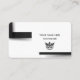 A professional and modern minimalist business card design featuring a clean white background and sharp black accents. This elegant template provides ample space for your name, title, and brand logo (or the included placeholder emblem). Perfect for professionals in corporate, consulting, creative, and technology fields who want a sophisticated, high-impact look. Easy to customize for any industry.
